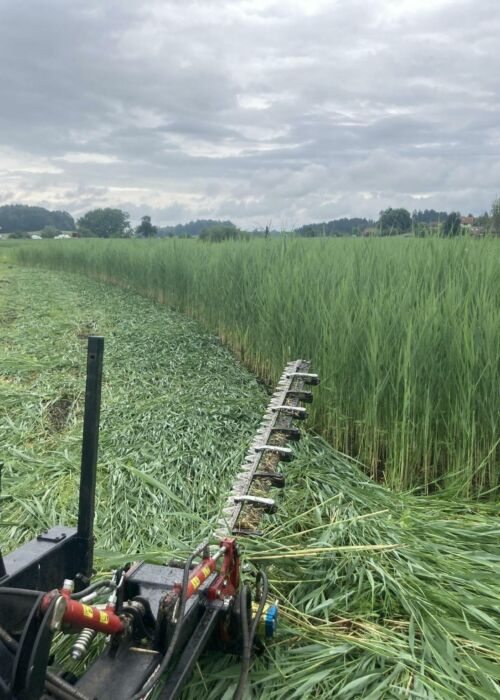 We mow wet/litter meadows using our technology developed specifically for this purpose (a quad mower with double-blade mowing technology), rake the mowed material and bring in hay and bedding.
